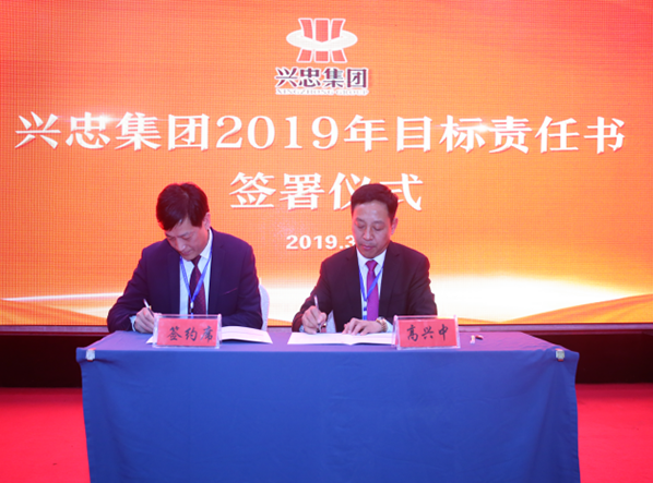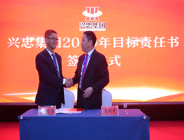 为贯彻落实集团公司下达的2019年度重点任务,实现兴忠集团年度经营目标任务的有效分解,集团总裁高兴中与集团各中心、各分子公司负责人签署了2019年经营目标责任书。年度目标责任书的签订,进一步强化了目标管理理念,形成契约机制,更好地落实经营责任,为实现兴忠集团2019年度战略发展奠定了坚实的基础。
